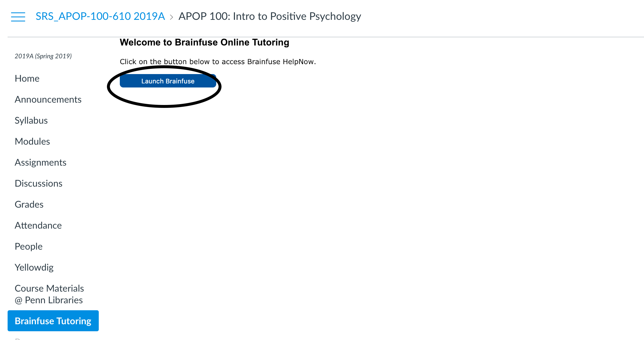 - If you do not see the Brainfuse Tutoring button in your course, your instructor would like you to work with them for tutoring advice. Please speak with your instructor about additional tutoring opportunities.