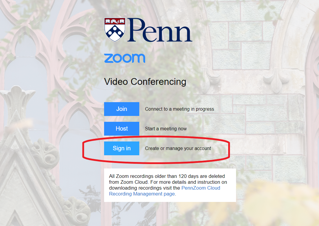 - Go to http://upenn.zoom.us/signin and log in with your PennKey.